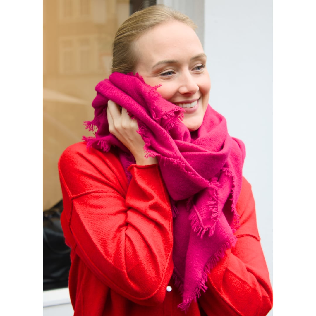 Der Schal ist aus 100% Kaschmir, wunderbar leicht, groß und ganz weich.