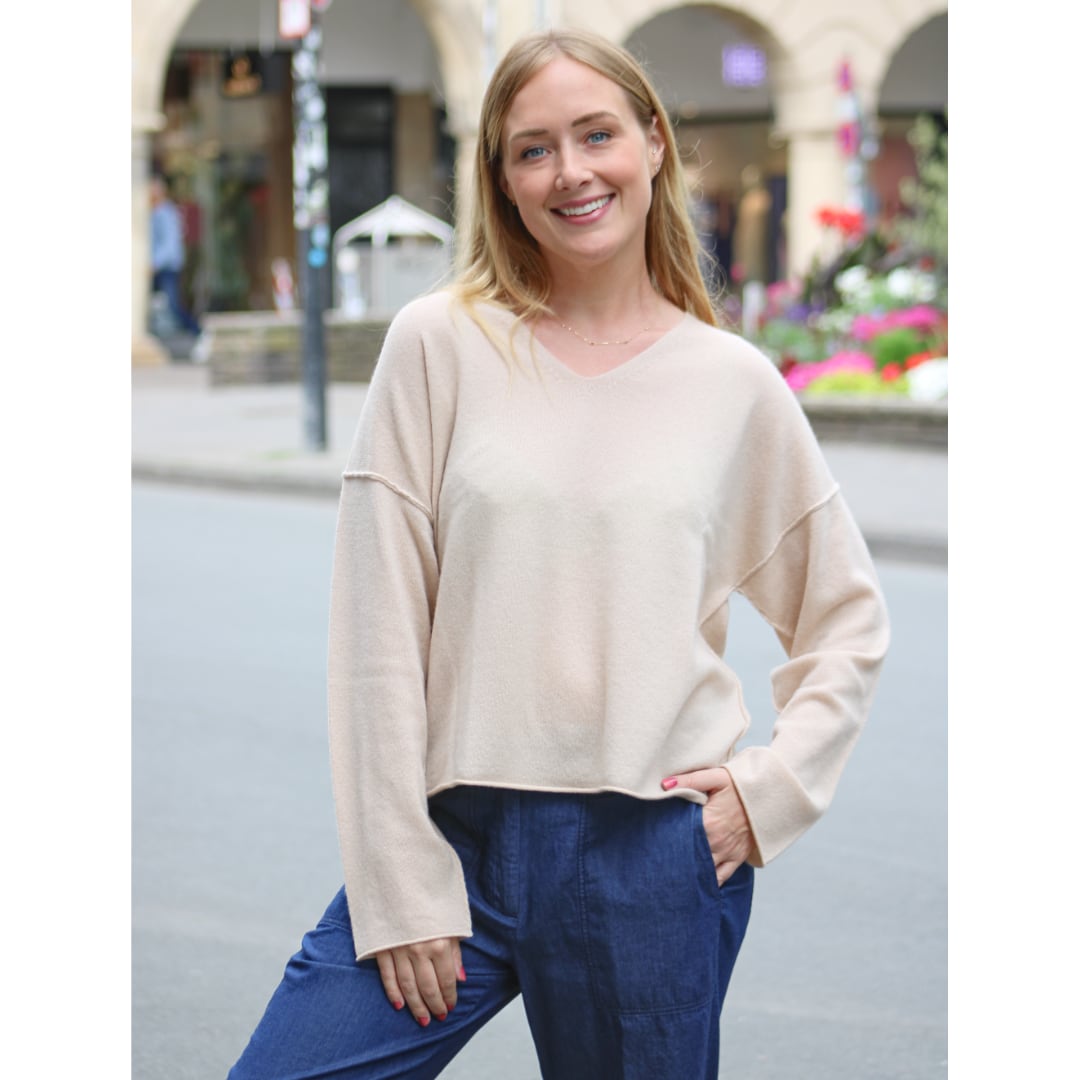 Der Pullover ist aus unserem wunderbaren Softly Material, einer Mischung aus Merinowolle und Kaschmir.