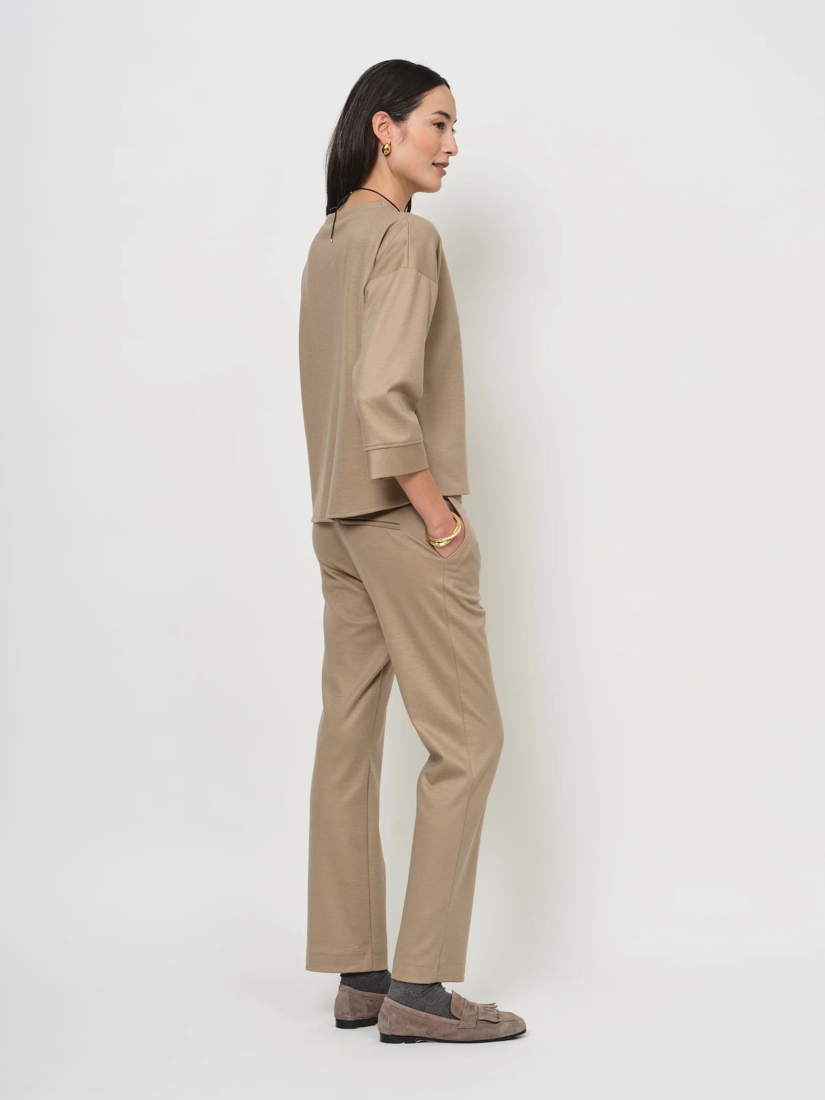 Das Shirt hat einen etwas höheren U-Boot-Ausschnitt und 3/4 Ärmel. Du kannst es sowohl lässig und alltaugstauglich als auch richtig schick stylen.